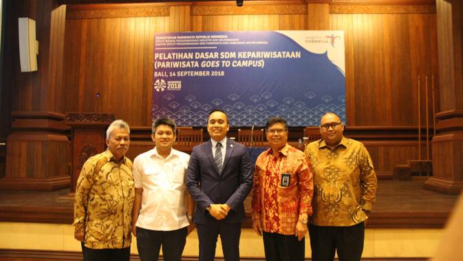 Goes To Campus 2018 dihadiri Ketua STP Nusa Dua Bali Dewa Gede Byomantara, Anggota Komisi X DPR RI Putu Supadma Rudana, Koordinator Perkumpulan Bogor ECO Sustainable Tourism Teguh Hartono, dan seorang Chief Financial Officer (CFO)/CBDO Alfonsus Aditya Budi.