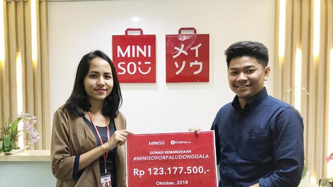 Penyerahan donasi Miniso untuk Palu dan Donggala ini diserahkan oleh Vania Damayanti selaku Brand Manager Miniso Indonesia kepada Iqbal Hariadi Head of Marketing Kitabisa.com yang berlangsung secara simbolis di kantor Miniso pada Senin (22/10/2018).
