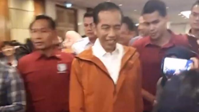 Liputan6.com, Jakarta - Lagi, Presiden Joko Widodo atau Jokowi menarik perhatian lewat outfit yang dikenakan. Hadir untuk meresmikan Ideafest 2018, Jokowi mengenakan parka berwarna terracota membungkus kemeja putih yang perpadu celana bahan berwarna hitam.