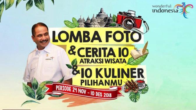 Staf Khusus Menteri Pariwisata Bidang Komunikasi dan Media Don Kardono menjelaskan, lomba dibuka 24 November - 10 Desember 2018. Ada dua kategori yang bisa diikuti, yakni 10 Atraksi Wisata Favorit dan 10 Kuliner Favorit.