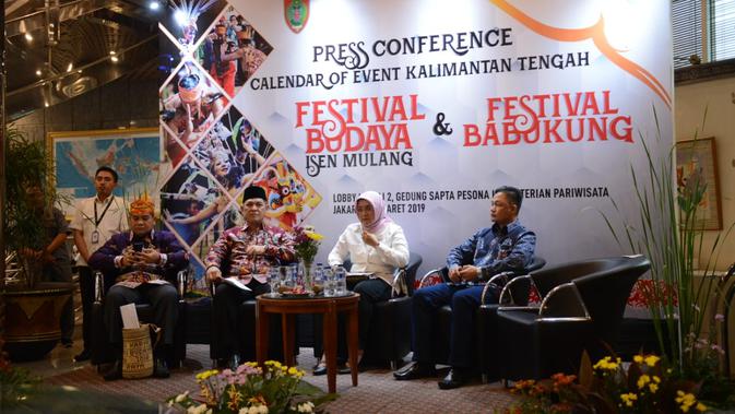 Liputan6.com, Jakarta Kalimantan Tengah (Kalteng) merilis Calendar of Event (CoE) 2019. Total, ada 167 event yang akan digelar sepanjang tahun ini. 2 di antaranya masuk dalam 100 Top Event Nasional. Yaitu Festival Budaya Isen Mulang 18-24 Mei, dan Festival Babukung 17-19 Juli. Launching CoE 2019 Kalimantan Tengah dilakukan di Gedung Sapta Pesona Kemenpar, Senin (18/3).