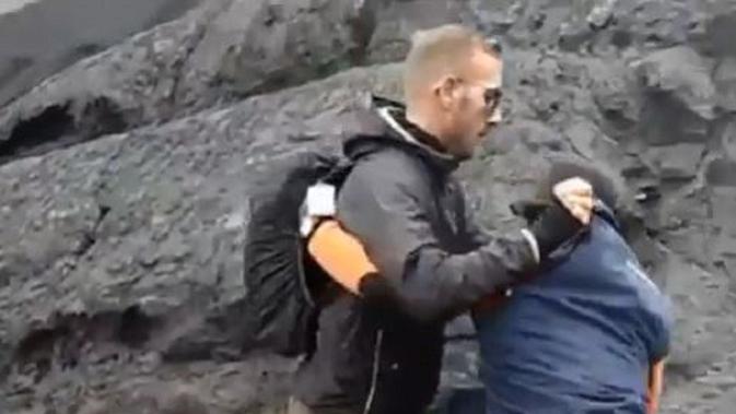 Aksi tersebut direkam akun Instagram Novrizal @matajitu. Dalam video itu wisatawan tersebut memakai kacamata hitam, jaket hitam, dan celana warna khaki.