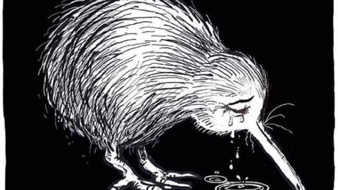 Ilustrasi burung kiwi sedang menangis banyak digunakan untuk mengucapkan belasungkawa sekaligus memberi dukungan untuk melawan terorisme dam kekerasan. Lalu siapa yang membuat gambar atau ilustrasi hitam putih dari burung kiwi tersebut? Dia adalah lkartunis Selandia Baru, Shaun Yeo.