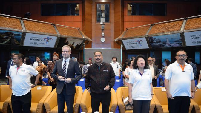 Liputan6.com, Jakarta Menteri Pariwisata Arief Yahya, resmi meluncurkan Indonesia Sustainable Tourism Award (ISTA) 2019. ISTA 2019 dilaunching di Balairung Soesilo Soedarman, Kantor Kementerian Pariwisata, Jakarta, Senin (18/3). ISTA merupakan ajang penghargaan kepada masyarakat. Sekaligus, mengukur implementasi pariwisata berkelanjutan dalam pengelolaan destinasi wisata di Indonesia. Hadiah total Rp 1 miliar sudah disiapkan.