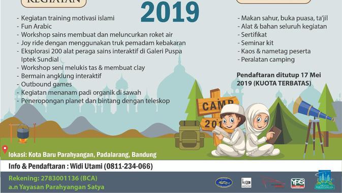 Liputan6.com, Jakarta Kabupaten Bandung Barat memanfaatkan moment datangnya bulan suci Ramadan dengan kegiatan positif untuk generasi penerus, yakni Ramadhan Art & Science Camp 2019 pada 25-26 Mei 2019.