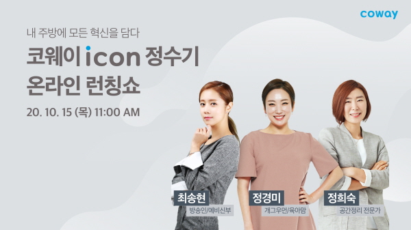 심병희 코웨이 마케팅실장은 “주방의 새로운 혁신을 보여줄 아이콘 정수기 출시에 맞춰 고객들과 긴밀하게 소통하기 위해 온라인 론칭쇼를 마련했다”며 “이번 온라인 론칭쇼는 실제 고객들이 느끼는 제품에 대한 궁금증을 함께 이야기하고 공감할 수 있는 요소들로 구성해 뜨거운 반응을 얻을 것으로 기대하고 있다”고 말했다.