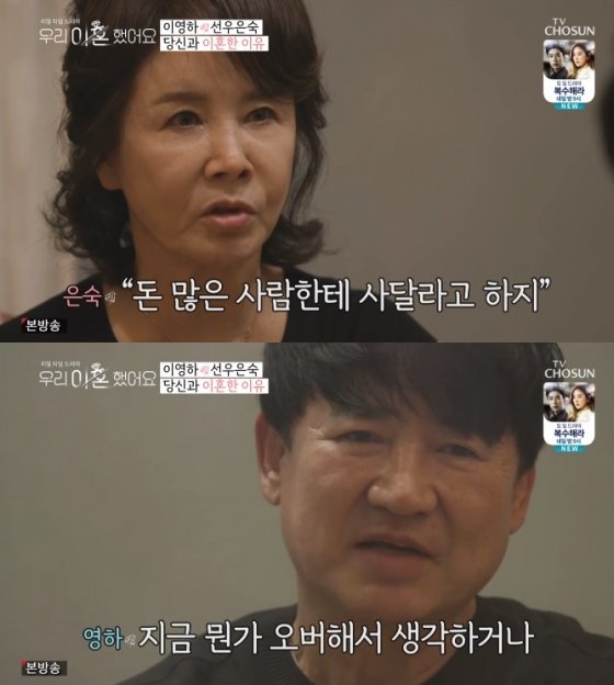 TV 조선 예능 프로그램 '우리 이혼했어요(이하 우이혼)'에서는 이혼한 지 13년 된 1세대 잉꼬부부 이영하, 선우은숙의 재회 모습이 담겼다.
