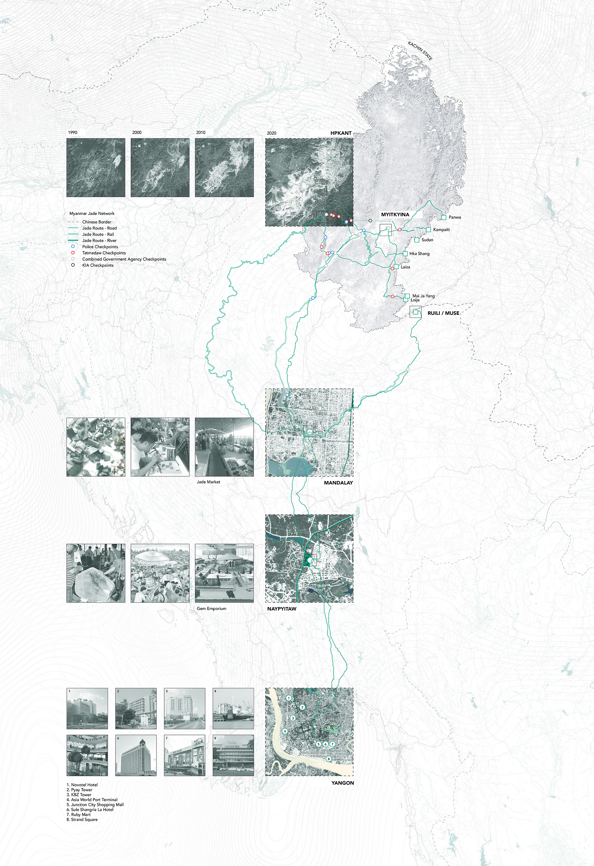 In Yangon, Myanmar, displays of conspicuous wealth adorn high-end real estate developments located at strategic downtown intersections and clustered around the city’s famous Kandawgyi and Inya lakes. While there is nothing exceptional about these buildings—enclosed atriums, shopping malls, tinted glass office towers, hotels, and condominiums—these developments contrast sharply with the decaying colonial infrastructure, congested roads, and bustling open street markets around them. In 2018 and 2019 we spent time in two of these shopping malls, paying $6.00 for barista-made cappuccinos, perusing the opulent interior décor replete with ambient lighting, fake ornamental tropical plants, and marble-lined fountains while circulating around atriums lined with international brands like Armani, Coach, Hugo Boss, and Versace. While the malls were not full, there was clearly a market for their products among wealthy Burmese nationals. The story of these buildings—who financed them, who built them, who frequented them, and how they related to the wider political economy of Myanmar—is the story of the murky dealings of the governing State Law and Order Restoration Council (SLORC) of the 1990s, the ceasefires it negotiated with insurgent groups along the Chinese border, and to the jade mines in the restricted northern state of Kachin.