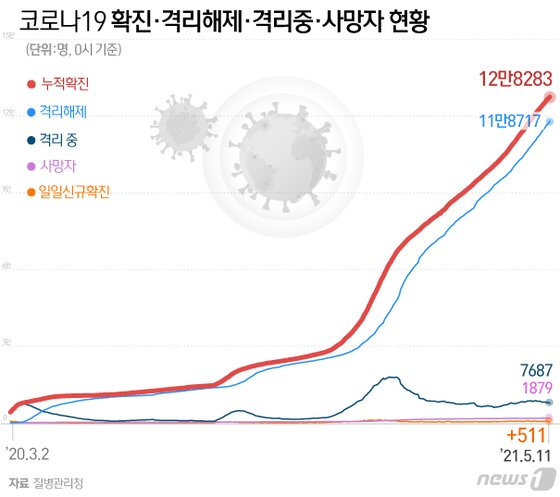 질병관리청 중앙방역대책본부는 신종 코로나바이러스 감염증(코로나19) 신규 확진자가 11일 0시 기준 511명 발생했다고 밝혔다. 전날 463명 대비 48명 증가했지만, 주말효과가 이틀째 이어지면서 500명대 초반에 그쳤다.