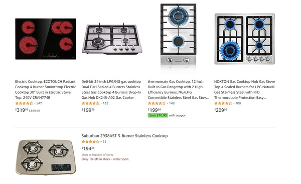 ‘RV Cooktop’이라는 키워드로 아마존 등에서 검색을 하면, 대부분의 제품은 가스를 사용하는 제품으로 나오는 것도 이런 이유다. 특히 미국에서는 오븐을 함께 쓰는 제품은 전기제품이 아닌 가스제품을 쓰는 것을 권장하고 있다.