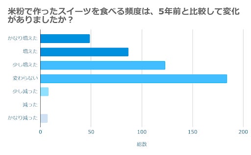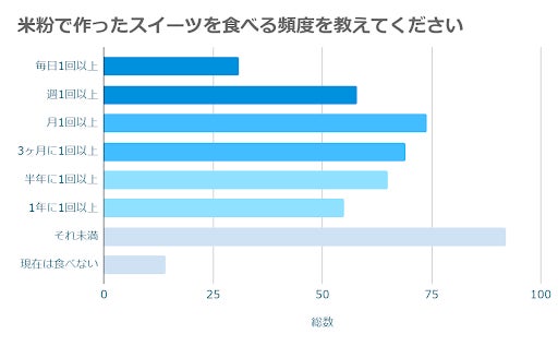 実際に、米粉で作ったスイーツを食べたことがある人は57.3%。半数以上の人が、食べたことがあると回答しました。食べたことがある人のうち、2人に1人は米粉スイーツを食べる頻度は増えてきており、3ヵ月に1回以上食べているリピーターとなっています。